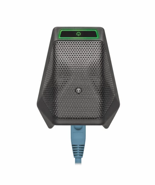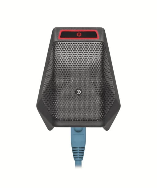 - Integrated switch allows mic to communicate with – and control – other Dante-enabled devices within a network