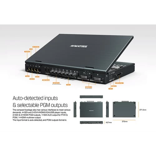 - Multiformat input auto-detected and PGM/AUX output format selectable