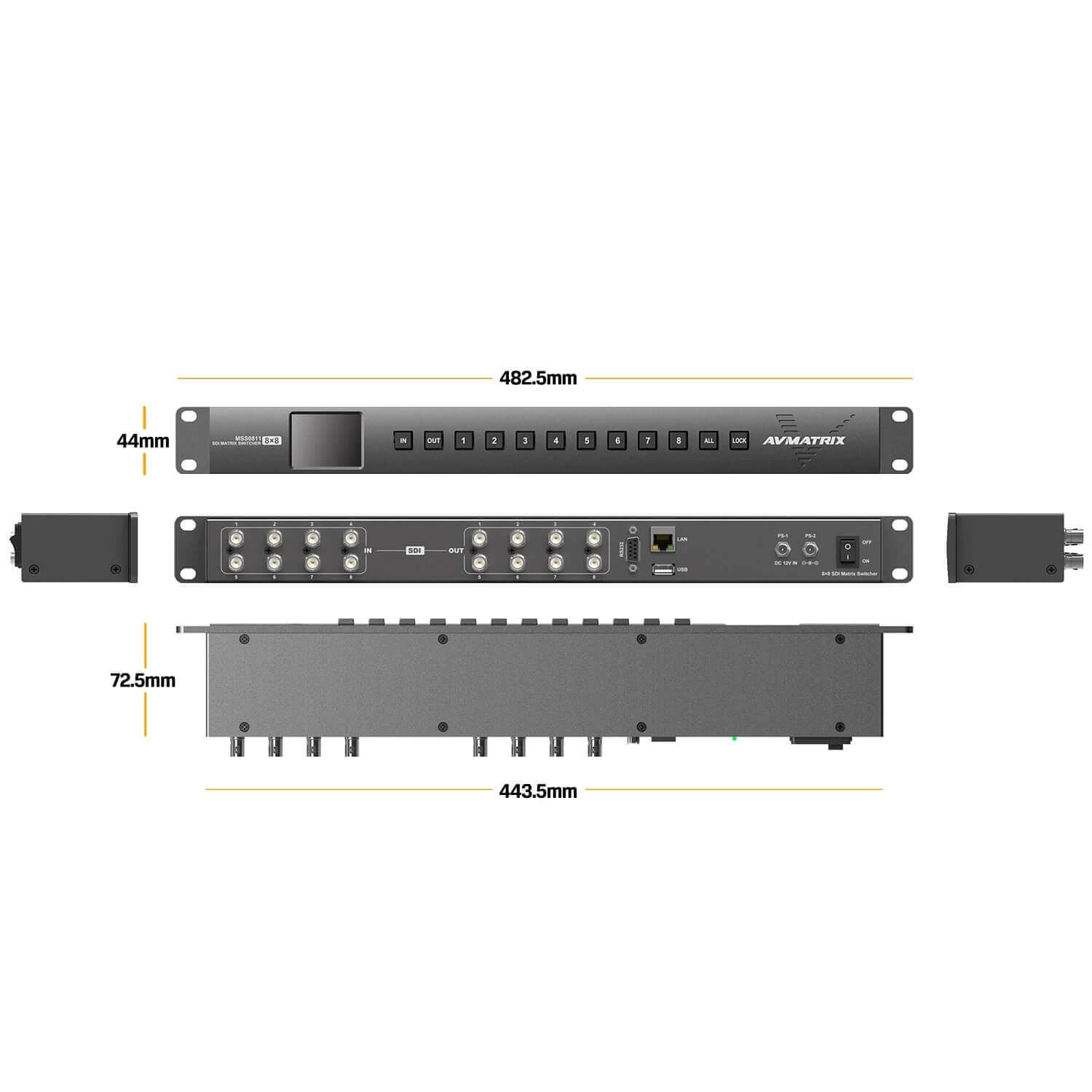 AVMATRIX MSS0811 1RU 8×8 3G-SDI Matrix Switcher