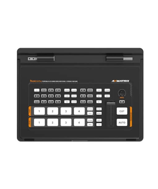 The AVMATRIX SHARK H4 PLUS is a portable design 4-channel HDMI multi-format video switcher integrated with a full HD 10.1inch FHD LCD panel. It supports various functions including streaming, recording, video switching, audio mixing, PGM/ multiview/ Aux out, different transition effects, Luma Key Chroma Key, DSK, LOGO, PIP/ POP, media library etc. Inputs support multi-format while output can be scaled, compatible with a variety of equipment. Enjoy flexible live streaming and recording options with this unit. Stream directly over the Ethernet or USB, and record to USB disk or SD card, all at up to 1080P resolution and 32Mbps bitrate. Users can also customize different settings and import or export the configuration quickly for various scenarios. It’s a powerful and professional video switcher for your choice