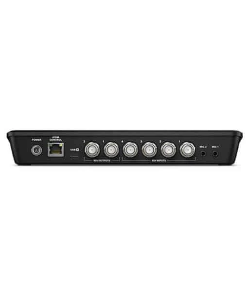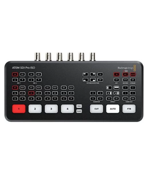 The ATEM SDI from Blackmagic Design is fast to set up and easy to use. It includes 4 standards converted SDI inputs, USB webcam, 2 SDI outputs, Fairlight audio mixer with EQ and dynamics, DVE for picture in picture, transition effects, green screen chroma key, 20 stills media pool for titles and free ATEM Software Control.