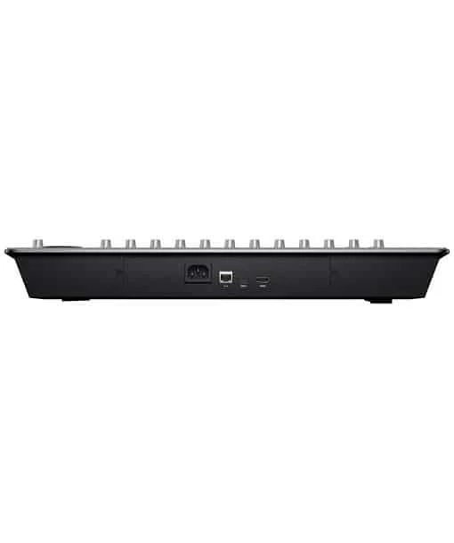 The Fairlight Desktop Console connects to your computer via a USB Type-C connection (cable included) and boasts an HDMI output for visually monitoring all console activity.