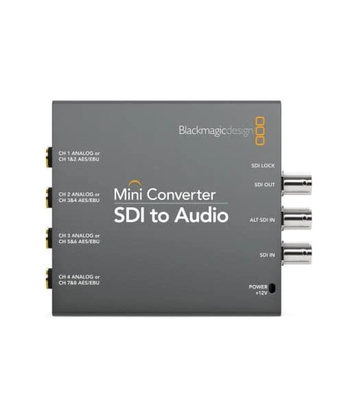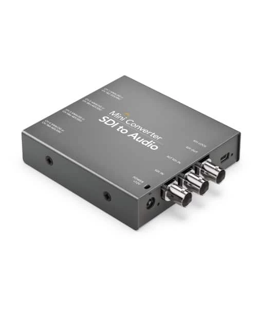 The Blackmagic Design Mini Converter SDI to Audio is the perfect way to de‑embed audio from any SDI source in SD and HD formats up to 1080p60! Audio is output on ¼” connectors for balanced analog and AES/EBU audio output to equipment such as mixers, analog decks, audio monitors and more. Mini Converter SDI to Audio is the ideal SD/HD SDI audio de‑embedder for when you don’t need the cost of the Ultra HD model!