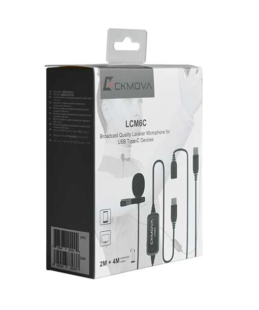 The CKMOVA LCM6C Lavalier Microphone for USB Type-C devices (6m Cable) is a broadcast quality omnidirectional condenser lavalier microphone with a USB-C connector.
