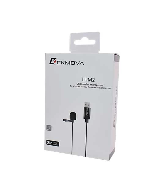 The CKMOVA LUM2 Lavalier Microphone for USB-A Devices (2m Cable) is an omnidirectional condenser microphone with a built-in noise cancellation pro audio decoder chip and 2m long cable.