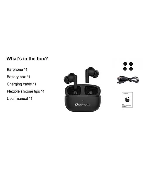 The CKMOVA MO7 Bluetooth Version 5.1 Earbuds with TWS EDR/BDR are Bluetooth Earphones with great sound quality for music, film or gaming. Features include Sound and Picture Synchronisation, Noise Reduction and Acoustic Tuning. CD Level Sound Quality lets you hear every detail and the new Bluetooth 5.1 high-efficiency chip give you stable connection. The buds are waterproof (IPX5) and the Li-ion battery, together with the charging box, give you 6.5 hours playing time.