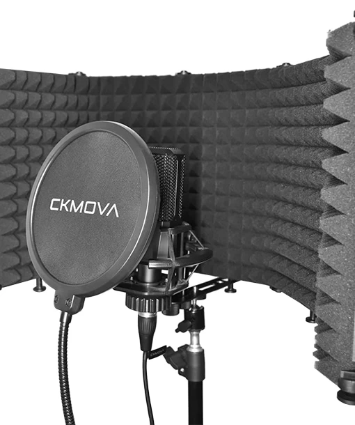 The CKMOVA SRF5 is a professional microphone reflection filter sound shield, made up of 5 adjustable panels for customised placement. With its High-density open-cell acoustic-foam layer, it is excellent for absorbing unwanted room noise and reflections.