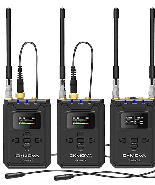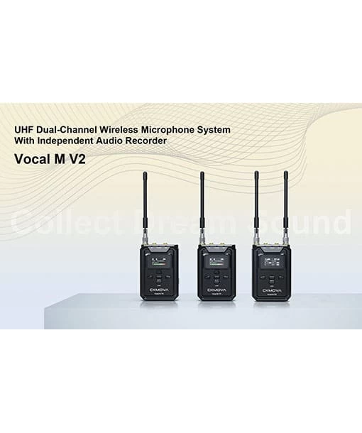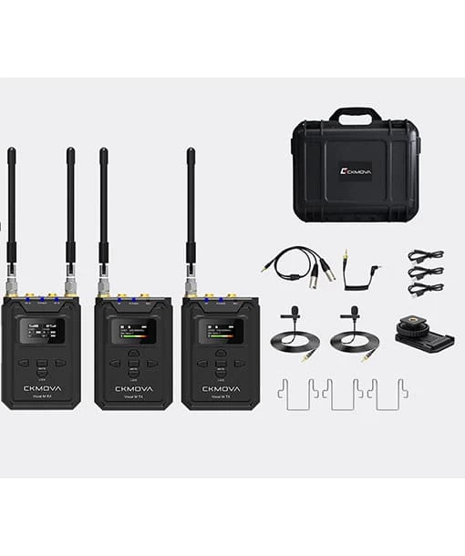 The CKMOVA Vocal M V2 is a reliable broadcast quaity dual channel wireless UHF microphone set with independent audio recorder and built-in rechargeable battery. The Professional wireless solution for ENG, filmmakers, EEP, vloggers, Live Podcast, mobile journalist and content creators.