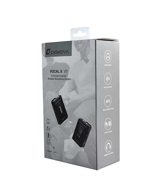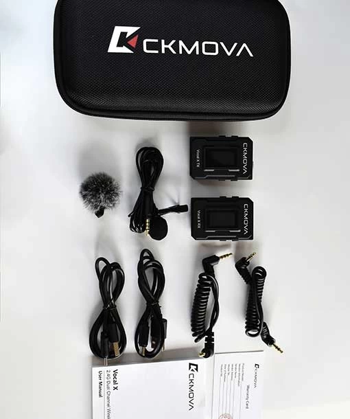 The CKMOVA Vocal X is a ultra-compact dual channel digital wireless microphone system. It offers a simple solution for interviews, live streaming with one person in combination with DSLR cameras, smartphone, computer, mixer and much more. The System boasts a range of powerful features , including 3.5mm headphone output, switchable Mono & Stereo, switchable Mic & Line input and OLED display on transmitter & receiver. The clip-on transmitter is compact & lightweight to directly clip on clothing and shirts, with built-in omnidirectional microphone and an external AC-VM1/VM1W lavalier microphone for multiple recording scenarios. The CKMOVA Vocal X is able to provide stable 2.4GHz signal transmission and deliver high-quality audio.