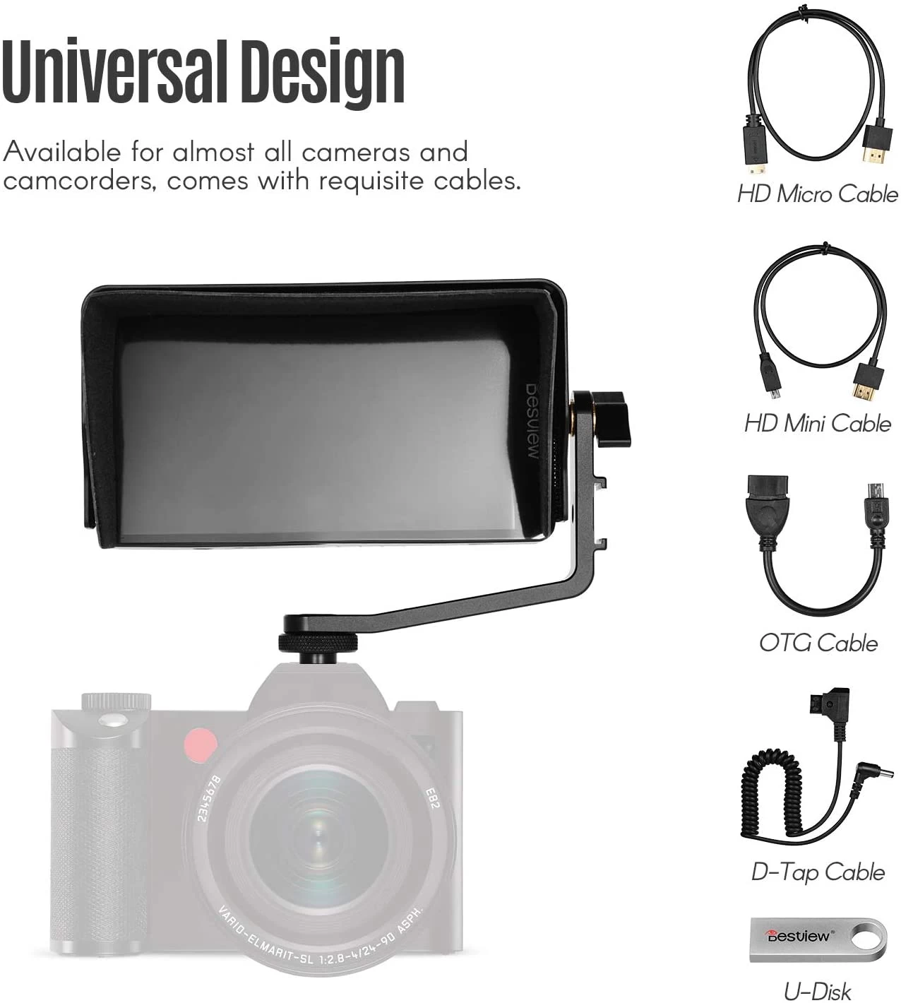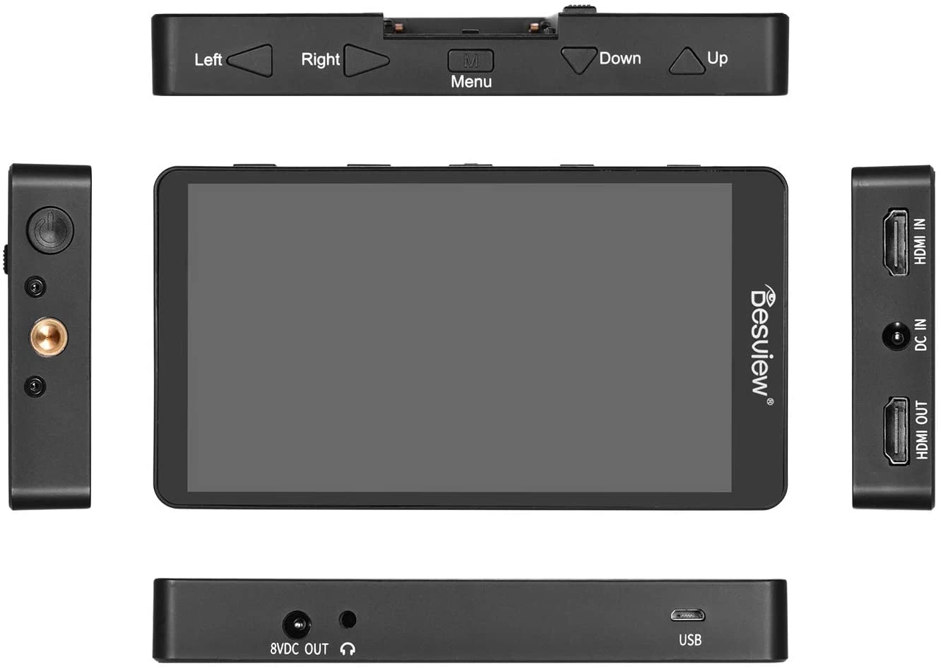 The Desview S6 Plus is a 5.5 inch on-camera monitor with OCR touch screen panel featuring a 1920×1080 Full HD resolution. It supports 4K HDMI signal input and output, up to 4096×2160@24Hz. Its ight and slim design is convenient for shooting on-camera as well as a suitable complement to handheld gimbals. Professional Functions: Brightness/RGB histogram, luminance/RGB waveform, zebra, false colors, cmaeramode, pinch to zoom.