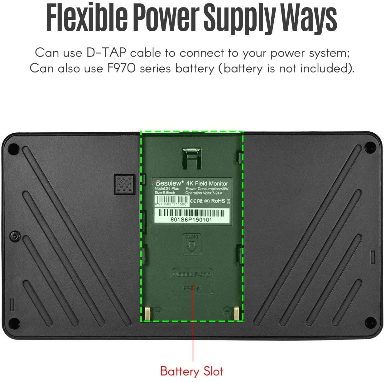 - Flexible power supply ways, can be powered by F970 series battery (not included), also can use D-TAP cable to connect to your power system.