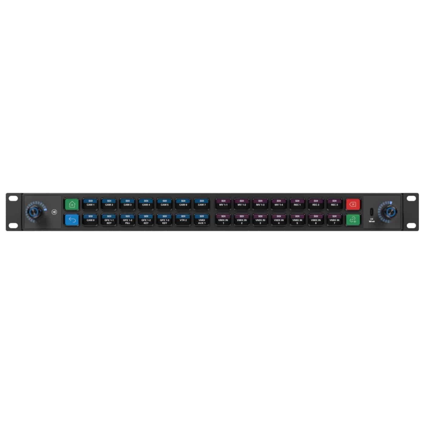 The Elgato Stream Deck Studio is a highly customizable, rack-mountable control surface to controll studio or post-production studio equipment. The Stream Deck Studio streamlines your studio setup with 32 customizable LCD buttons, two dials, and compatibility with a wide variety of broadcast equipment and control software such as Bitfocus Buttons.