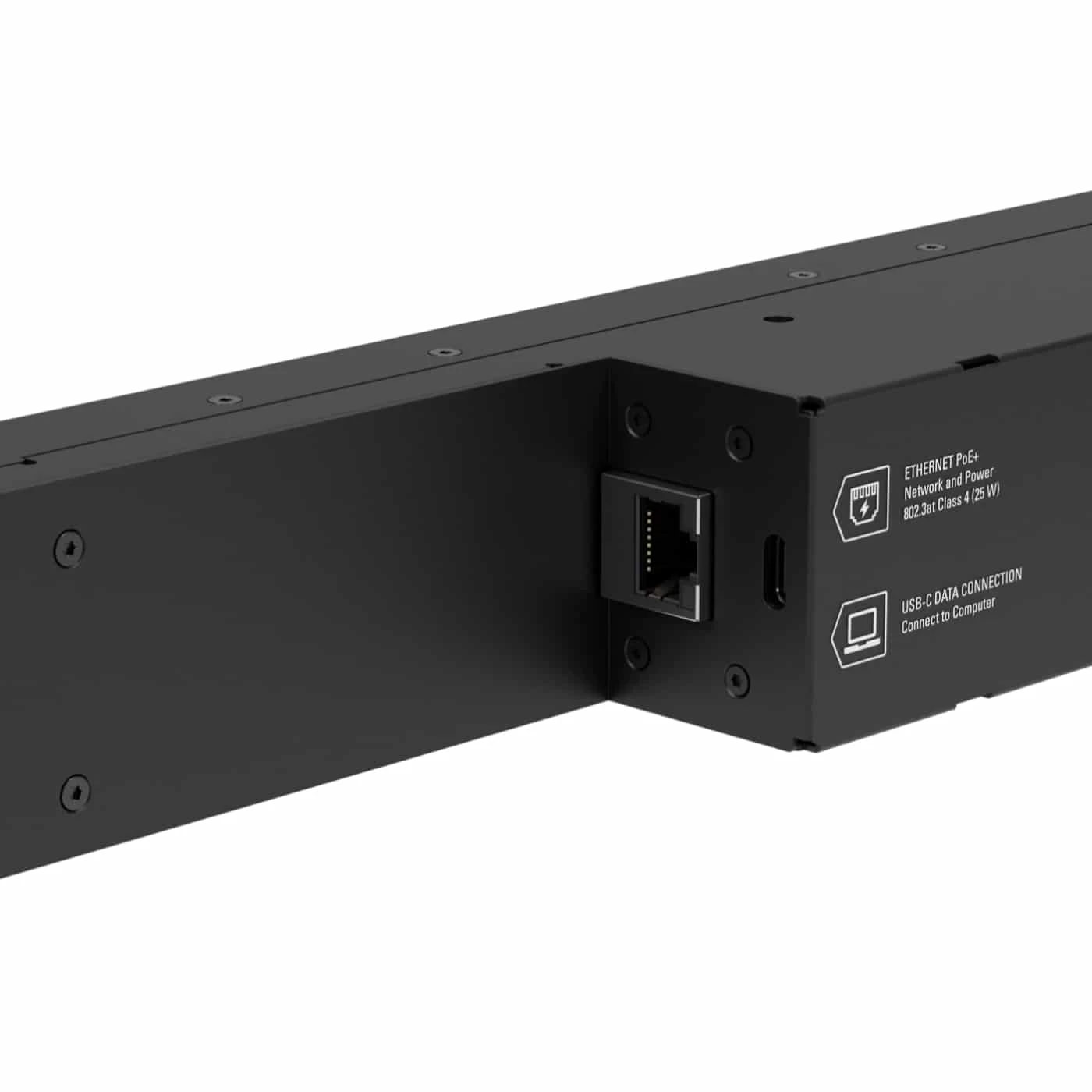 The unit fits standard 19″ 1 RU racks using the included brackets and connects to a LAN using 100 Mb/s Ethernet. It can be powered using integrated PoE+ technology or via USB-C using a separately available power supply. It connects to a Windows 10+ or macOS 13+ host computer using USB-C.