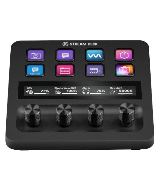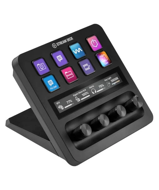 Iconic Stream Deck tech with LCD keys, dials, and touch strip. Fully customizable. Perfect for any workflow. Stream Deck + is your audio mixer, studio controller, production console – anything you want it to be. Trigger actions. Control mics and cameras. Adjust volume, lighting, and much more. Create limitless pages for different apps and swipe between them on the fly. Set up with ease in the Stream Deck app. Unlock Elgato Wave Link mixing software, and hit the Stream Deck Store for plugins, icon packs, thousands or royalty-free music tracks, sound effects, and more. With new plugins and updates added regularly, Stream Deck + evolves with your workflow.