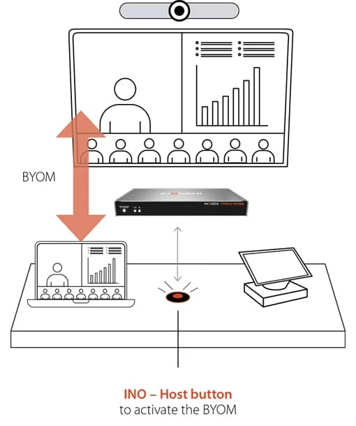- By pressing the button again, BYOM to the laptop will be disabled and the host will return to the room PC as indicated by no illumination.