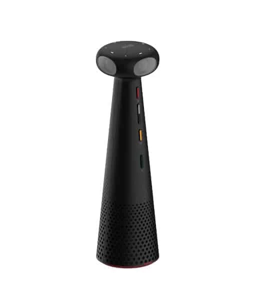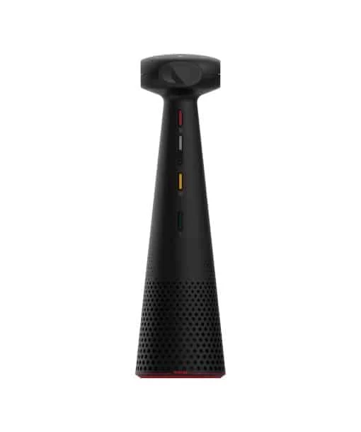 The IPEVO TOTEM 360 is a complete audio-visual solution, providing a seamlessly stitched 360° image from four cameras, sound from an all-around speaker, and capturing voices via an array of four beamforming microphones with AI noise reduction.