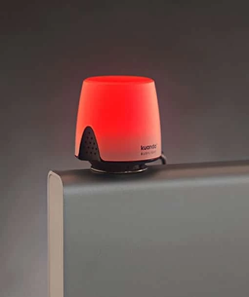 The kuando Busylight Omega functions as a status light, which automatically changes its colors according to your UC status in e.g. MS Teams, signalling to colleagues when you are: