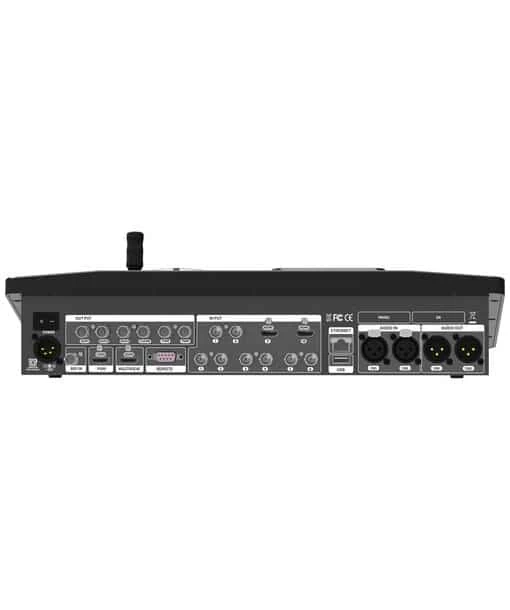 | Connections | • 3G/HD/SD-SDI Input : BNC 75Ω 8ea (with Scaler) • HDMI Input : 2ea (with Scaler) • 3G/HD/SD-SDI Output : BNC 75Ω 6ea (AUX1/AUX2/AUX3/CLEAN/PGMx2) • HDMI Output : 2ea (MULTIVIEW/PGM) • Remote: 1ea • Reference Input: 1ea • USB2.0: 1ea • External Analog Audio Input : XLR 2ea • External Analog Audio Output : XLR 2ea • DC 12V: 1ea |