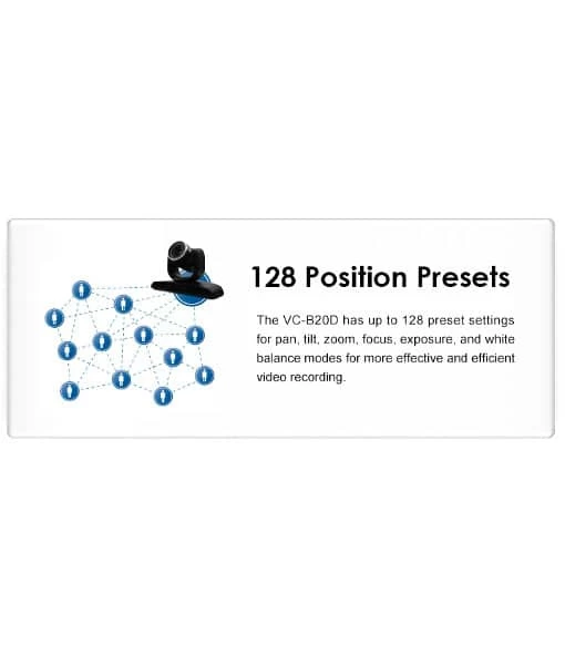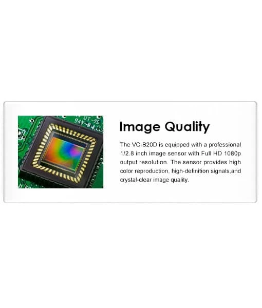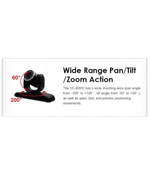The VC-B20D HD PTZ Camera from Lumens is equipped with a professional 1/2.8″ image sensor with Full HD 1080p output at 60 fps. It features a 5x optical zoom lens, white balance, and an exposure mode that delivers a clear image even in low light conditions. The camera covers a wide shooting angle, achieving smooth PTZ operations with quiet high speeds and precise positioning. It offers different interfaces like Ethernet, DVI-I, and C-Video, and supports live broadcasting via H.264/MJPG with a low latency of less than 150 ms. It is suitable for lecture recording, video conferencing, and security surveillance systems, thanks to its continuous, vivid, distortion-free live image delivery.