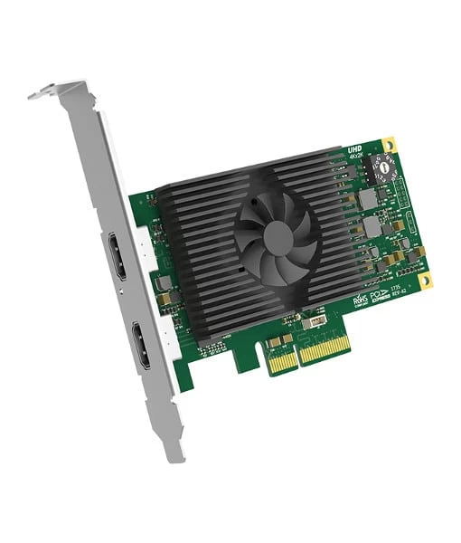 Capture 4K resolution video using the low-profile Pro Capture HDMI 4K Plus LT Loop-Through Capture Card from Magewell. This PCI Express x4 capture card is compatible with DCI 4K and UHD video formats up to 4096 x 2160, and features HDMI 2.0 input and loop-through ports. Use an optional HDMI 2.0 to DVI-D 1.0 adapter (not included) to input via DVI-D. Capture uncompressed video from a camera or switcher’s HDMI 2.0 or DVI-D 1.0 output on your computer for recording, editing, or streaming.