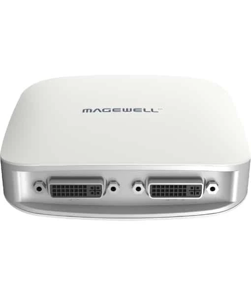 Capture two HD or SD signals simultaneously with Magewell’s XI200XUSB USB 3.0 Video Capture Box. On the front panel of the box are two DVI inputs, which can also accept VGA, HDMI, and component signals via the included breakout cables and adapters. The XI200USB is plug-and-play compatible and uses your PC’s existing drivers to connect. The box has its own internal processor, which can perform automatic cropping, deinterlacing, and color adjustments before the video reaches your computer, taking that processing load off of your CPU.