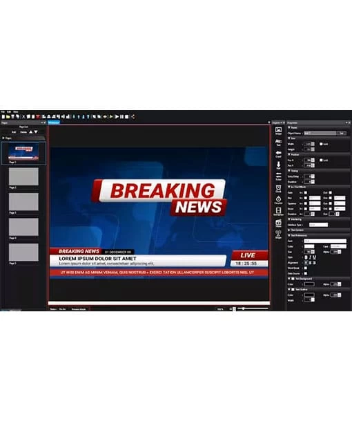 Real broadcast-quality graphics powered by Marsis CG. Unlimited overlay channels with several objects and effects.