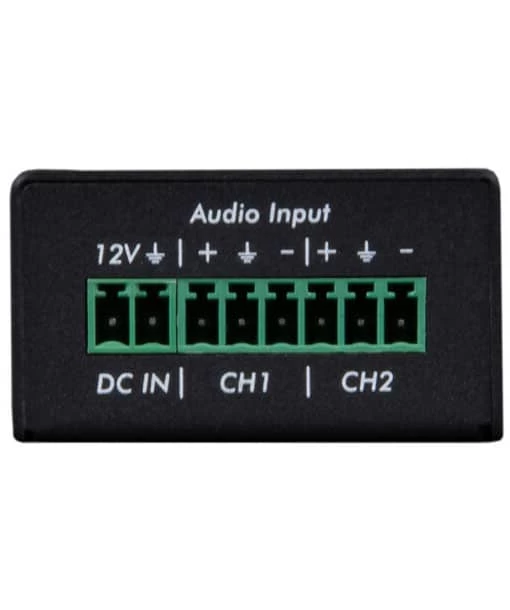 Connect analog audio equipment to a Dante network with the MuxLab Dante 2-Channel Analog Audio Encoder, a device that converts the transmission of full-range (20 Hz to 20 KHz) balanced or unbalanced two-channel analog audio signals to digital to be used with Dante-compatible equipment. It can be powered using either PoE from any PoE network switch or via local with a 12V power supply. The Dante 2-Channel Analog Audio Encoder includes two Phoenix block connectors.