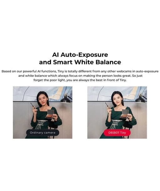 OBSBOT Tiny uses deep learning neural networks to achieve AI tracking with auto-framing, it always keeps stable and smooth tracking and automatically keeps you framed front-and-center in all your streams and videos