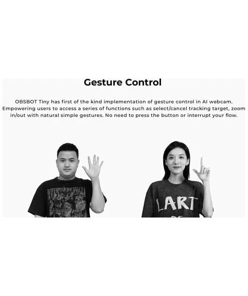 OBSBOT Tiny allows users to access a series of functions such as select/cancel tracking target and zoom in/out with natural simple gestures, without the need to press any buttons