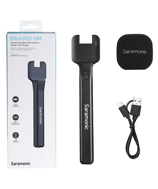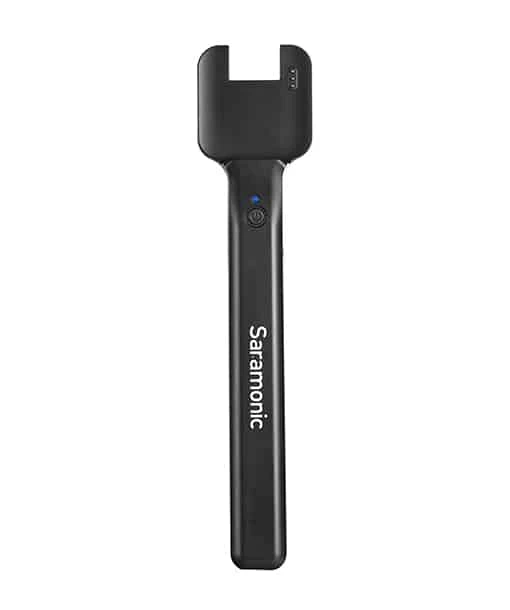 The Saramonic Blink900 HM is a handheld transmitter holder for the Blink900 TX clip-on transmitter. Simply slide-on the TX transmitter onto the HM holder, and users can turn the Blink900 transmitter into a handheld microphone, drastically expanding the Blink900’s flexibility in seconds. Ideal for handheld interviews, presentations, news reporting, speeches, podcasts, and much more.