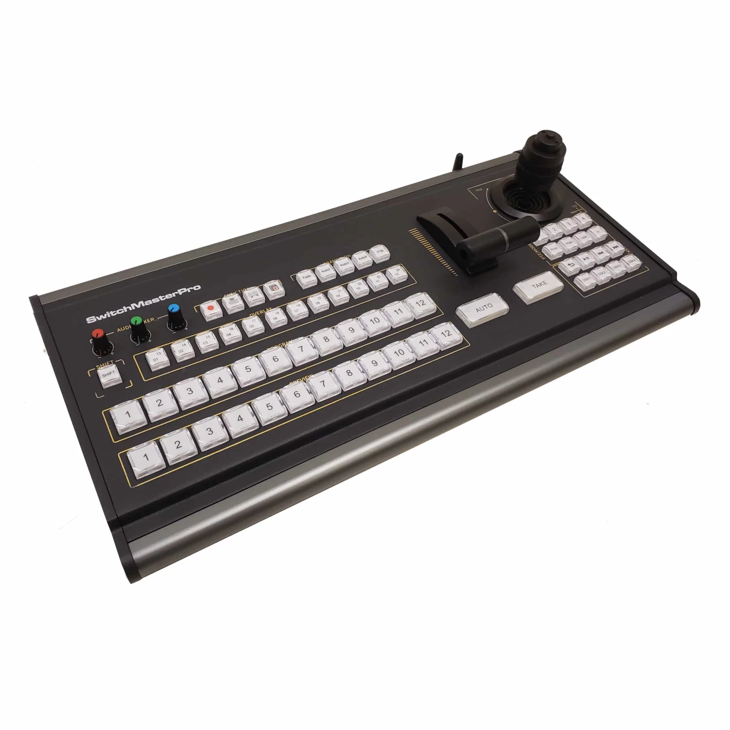 The SwitchMasterPro Medium control surface features 12 total inputs with Program and Preview rows for each input. The control surface is plug-and-play when using with vMix, and it is also compatible with Blackmagic, TriCaster, and Central Control Elite software. It includes a configuration application for a quick setup.
