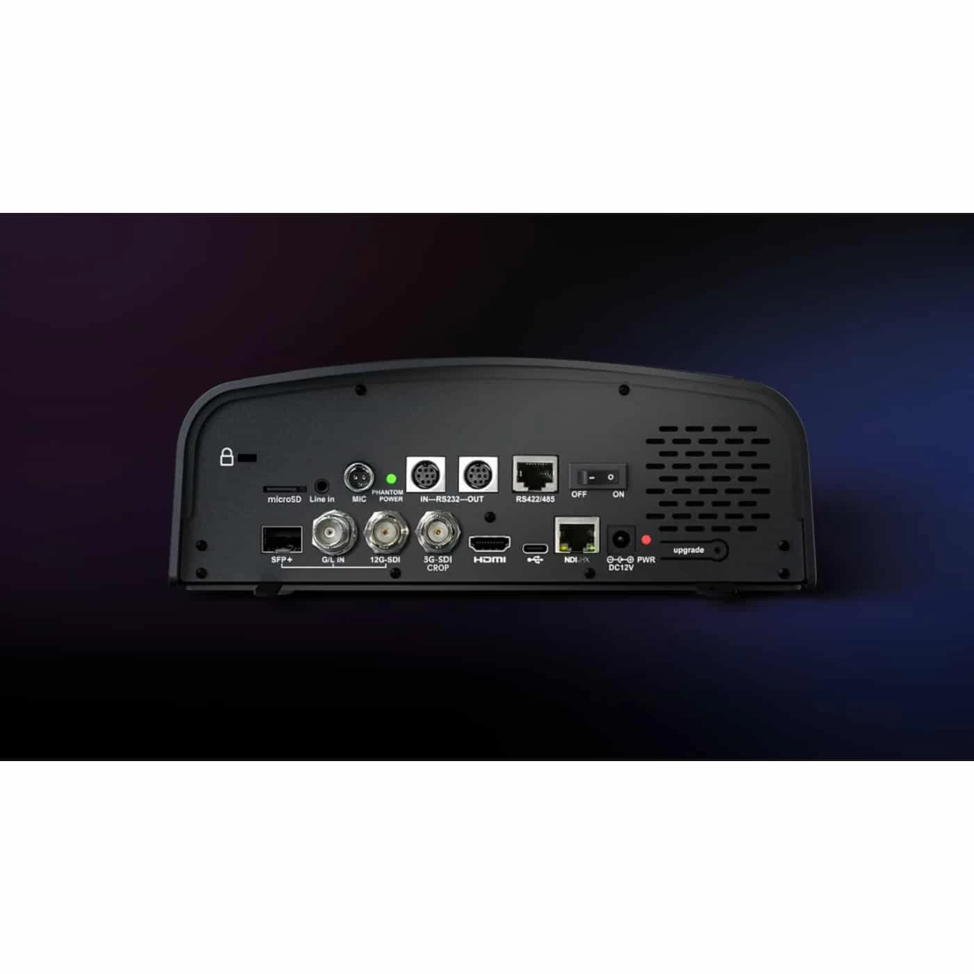 12G-SDI | Genlock SFP(+) | Full NDI® | NDI®|HX2 | HDMI2.0 | 3G-SDI | USB2.0 | XLR