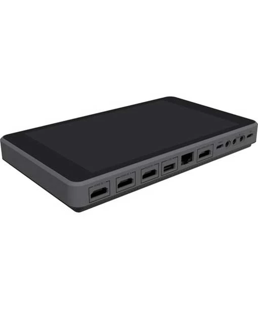 The YoloLiv YoloBox Pro allows you to connect and live switch up to 8 video sources, and then connect to a local area network via Wi-Fi, Ethernet, or LTE (LTE connection requires SIM card and data plan not included). The large 8″ touchscreen display shows the streaming image, the input streams as well as the control interface, which allows you to switch between the info sources with a touch. It also features an HDMI output to display your stream locally on an optional HDMI display. It also has a line-level audio input, a mic-level audio input, and a discrete headphone audio out.