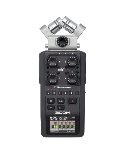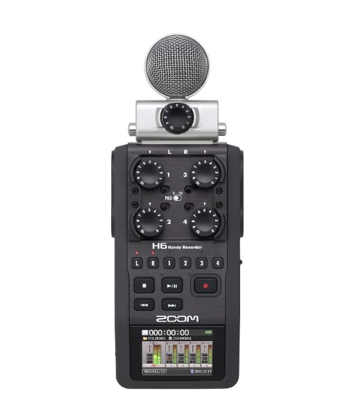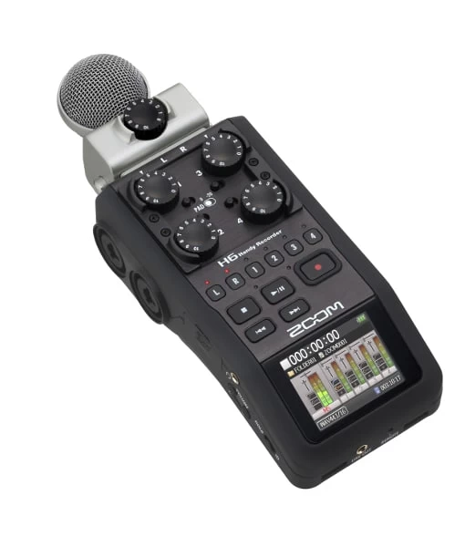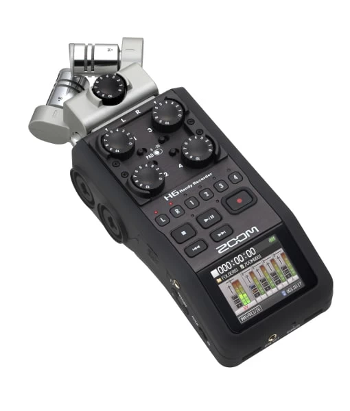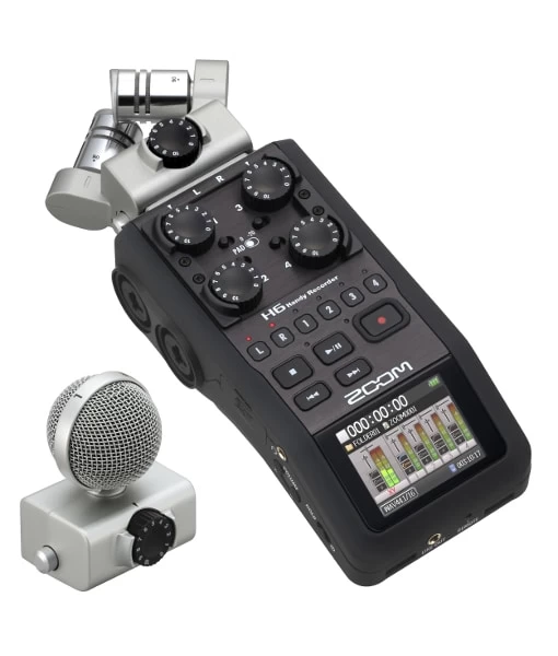 The Zoom H6 Handy Audio Recorder is most versatile portable recorder ever.with the revolutionary H6 six-track recorder, the bar is raised further still. Four interchangeable input capsules – X/Y, MS, Shotgun, and Dual XLR/TRS Combo – make the H6 the ultimate chameleon of the audio world, and its advanced preamps make it the best-sounding one too. Whatever your application – live recording, professional film/video work, live broadcast or electronic news gathering – the H6 can handle it with ease.